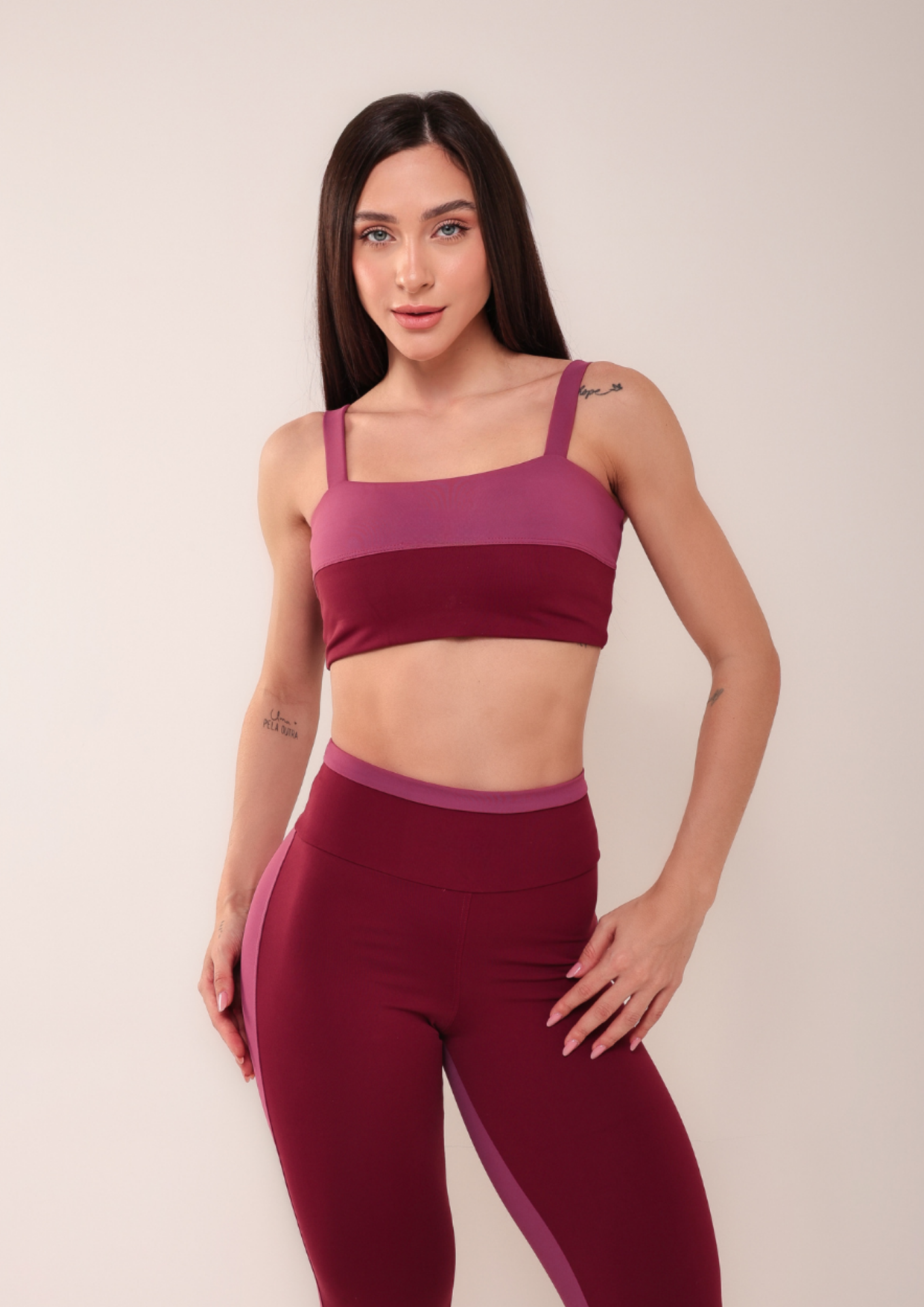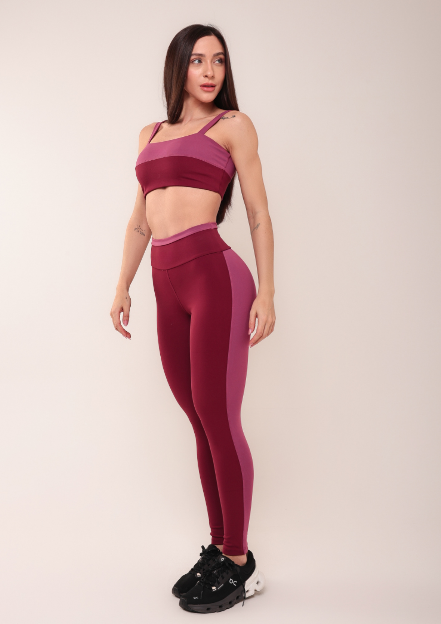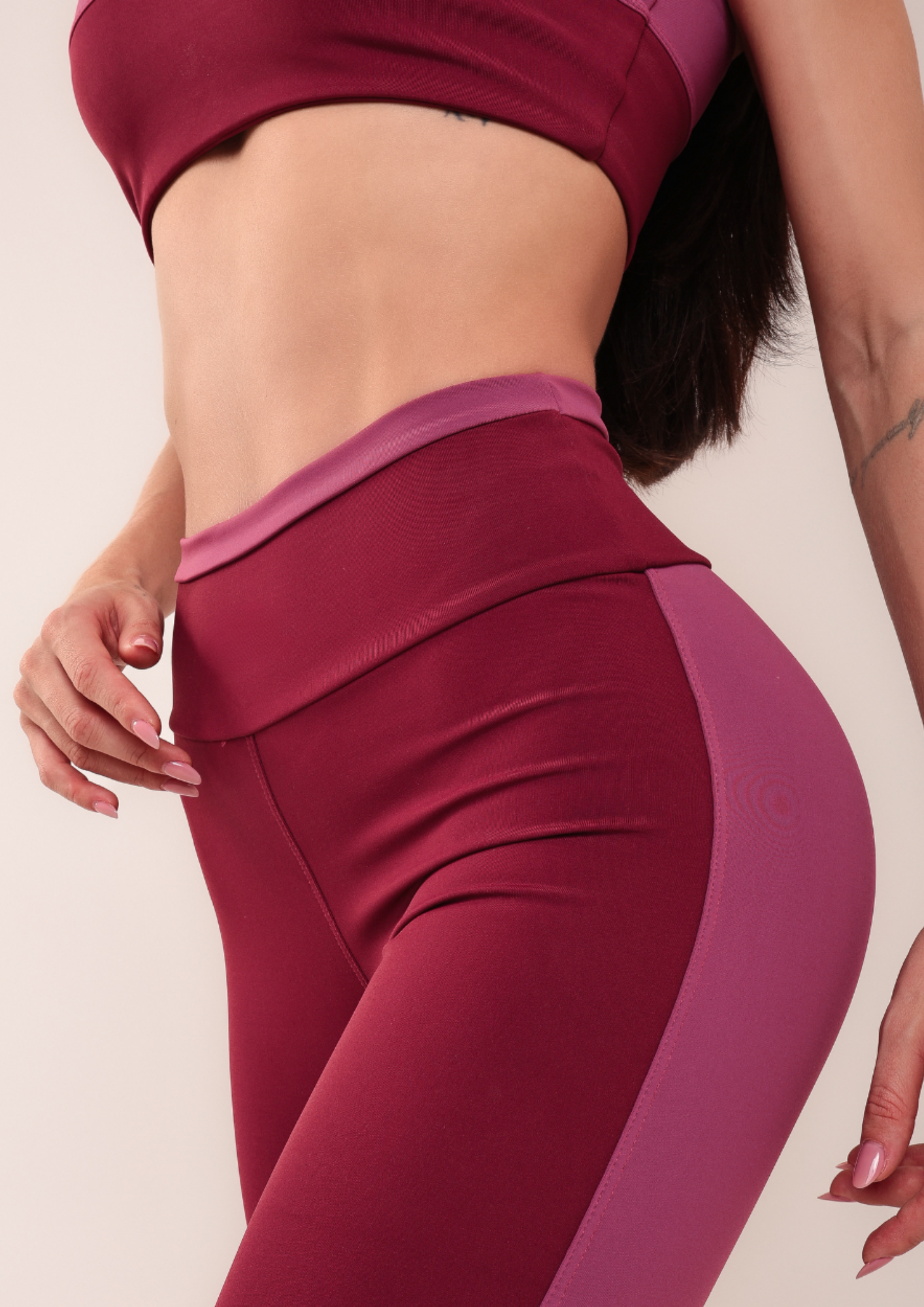 Conjunto de Calça Fitness Cherry: alta compressão, zero transparência e proteção UV50+ para treinos com conforto e segurança. Top sustentável e design moderno garantem firmeza, estilo e performance com elegância em cada movimento.