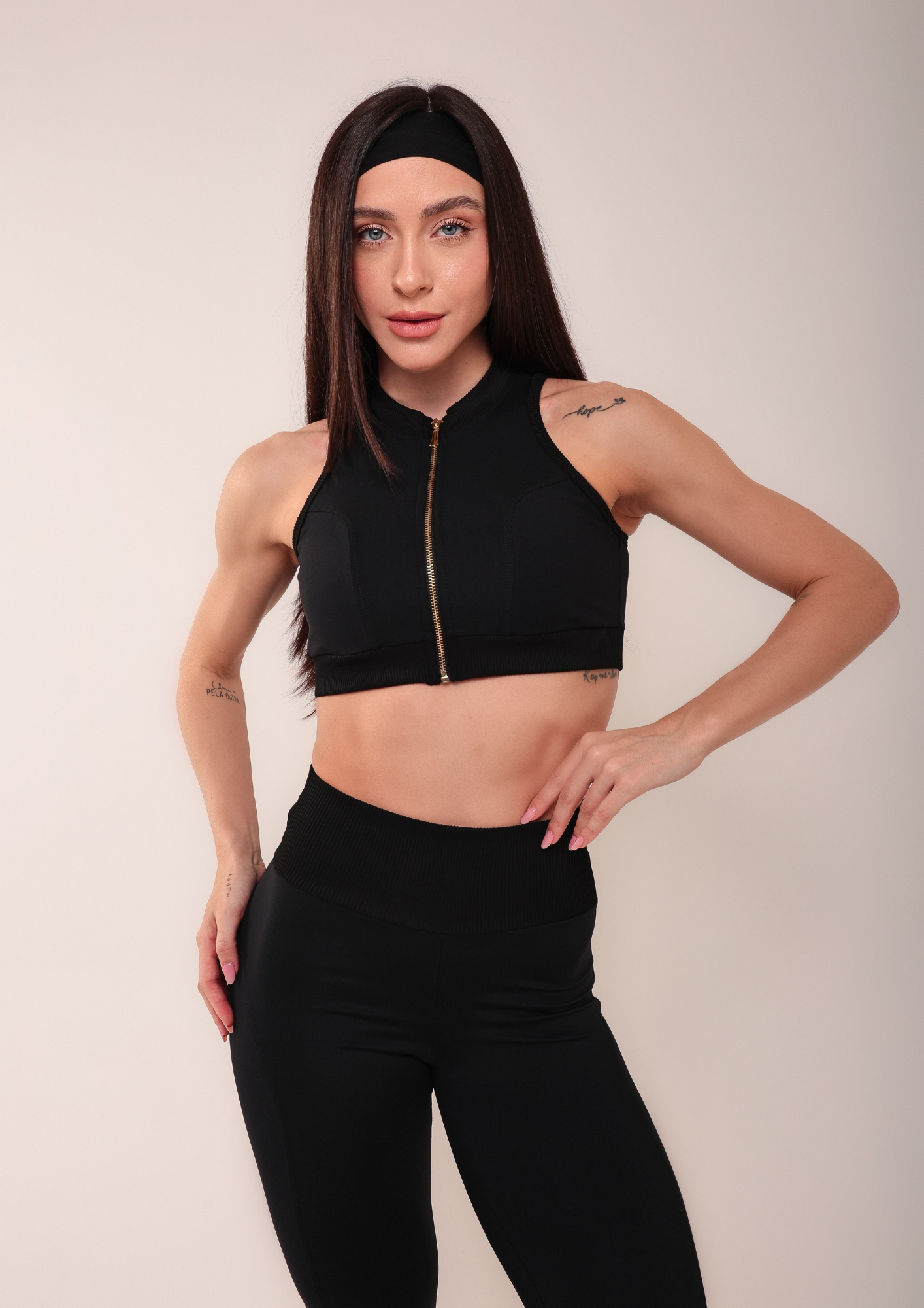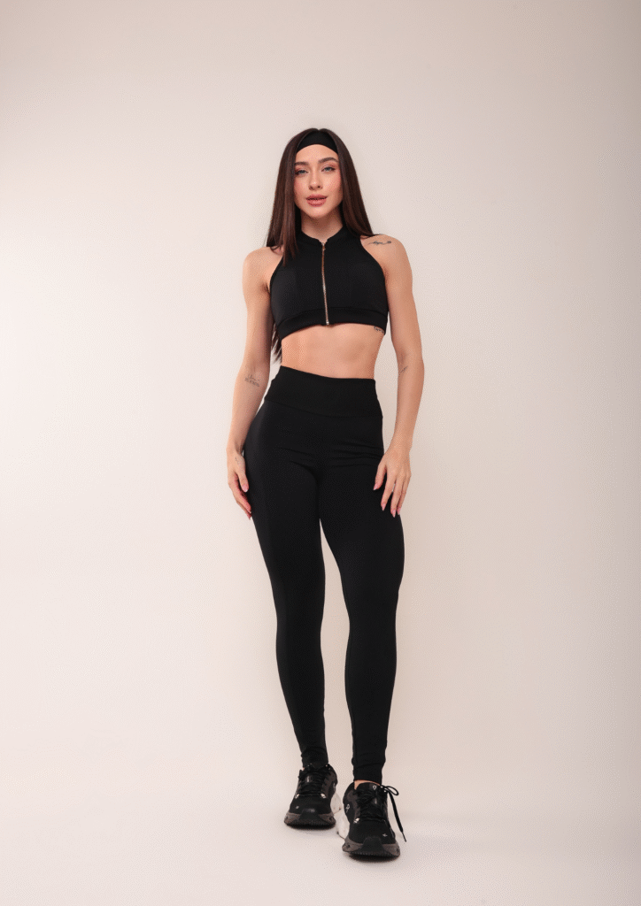 Conjunto de Calça Fitness Power: alta compressão, zero transparência e proteção UV50+ para treinos com conforto e segurança. Top sustentável e design moderno garantem firmeza, estilo e performance, unindo elegância e consciência em cada detalhe.